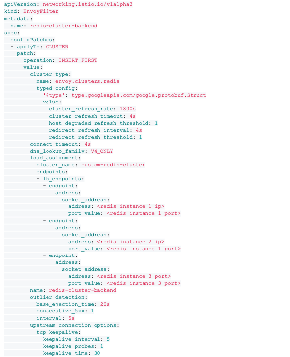 In order to configure the Envoy Redis cluster proxy we needed to create a backend cluster.
